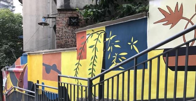 整条画廊的涂鸦还特意邀请了四川美术学院的专业团队进行设计,然后由重庆市第四十二中学、人和街小学的老师和学生共同绘制而成。