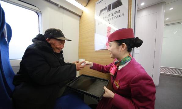 2016年12月13日,重庆,列车工作人员对重点旅客进行服务。