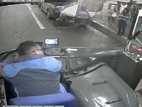 △车载监控看到老人上车、下车的情况。