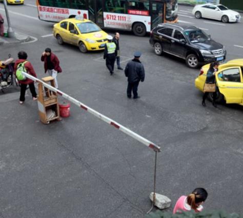 你见过用衣柜做成的道闸吗?江北区中医院门口就出现一个柜子做成的道闸,保安通过道闸来控制进出车流大小。