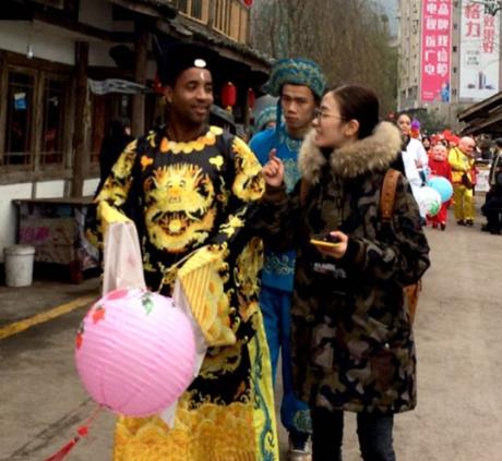 2月10日,元宵节临近,涪陵举行“咱们的节日”社火旱船闹元宵大巡游,吸引了大批游客驻足观赏。巡游队伍中,来自非洲埃塞俄比亚的贝德分外引人瞩目。贝德说,他是非洲舞的表演者,来渝交流学习,自从中国朋友带他看过川剧后,就喜欢上了戏中包公的造型,他认为包公很“酷”,一直梦想自己有机会穿上戏服,扮演包公。这个梦想终于在今年的元宵节巡游上变成了现实,他特地让朋友用手机照了许多他扮演包公巡游的照片,发给埃塞俄比亚老家的朋友和亲人,并向远在非洲的乡亲介绍中国的元宵节。