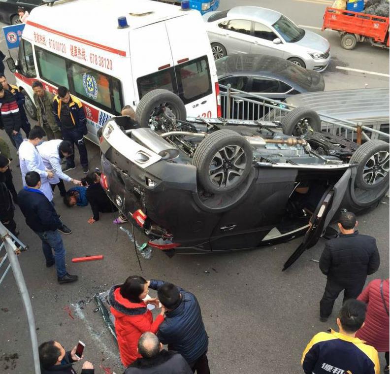 据介绍,事故发生于2月12日下午7点17分左右,在渝北一家医院住院部旁的斜坡处,一辆正在爬坡的越野车,突然横着朝左边的栏杆处后退,速度越来越快。正在这时,一名年轻女子带着一名小男孩正经过栏杆处,因躲闪不及,被失控越野车撞下三米左右的堡坎。