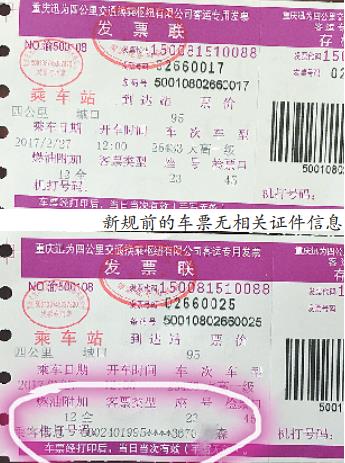 届时,长途汽车票也会和火车票、飞机票一样,印上旅客身份信息,进站时如被检查出票、人、证不一致,只能原路返回。