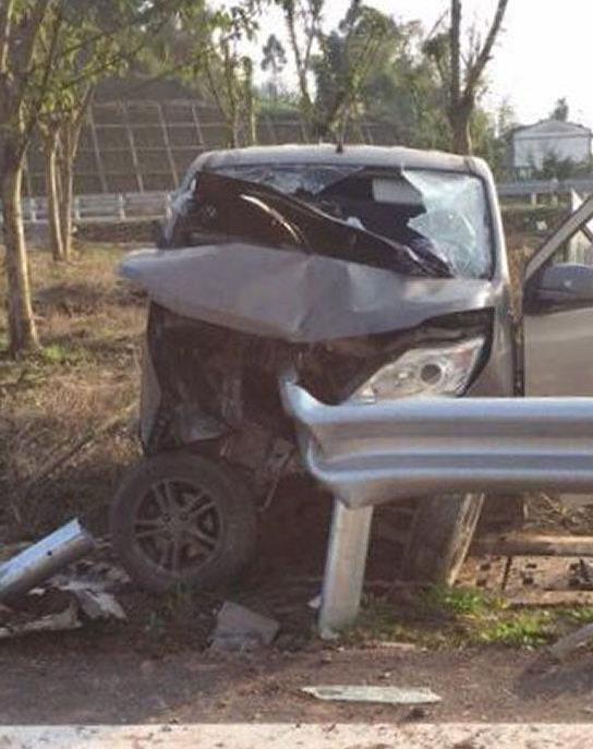高速路上疲劳驾驶车被护栏刺穿 致一家4口受伤