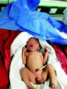 市二医院妇产科医生屈芳告诉记者,她们到达现场后,发现床单上到处都是陈旧性血迹,4斤重的男婴肚子上还盘着约20厘米长的脐带,远端打了个结整个都已干枯。经询问得知女子是怀孕29周便产下男婴,属早产,脐带是自行断的,胎盘已娩出并丢掉。她们于是在酒店房间内立即对男婴进行了消毒、断脐带、包扎等处理。