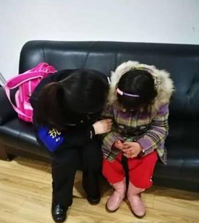 西西边哭边说,民警在一旁不断安慰。等西西终于平静下来,民警问其是否有父母联系方式时,西西将妈妈的电话号码告诉了民警。