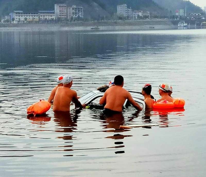 父子驾车坠湖 摩的司机像风一样救人又风一样离开