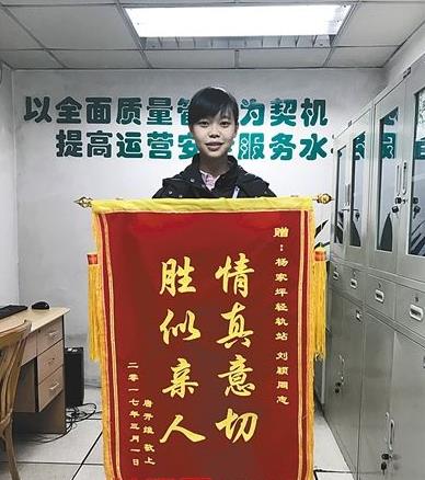 3月5日早上,一名女乘客带着一面锦旗来到杨家坪站,同时还拿出了一张百元钞票,称要还给站务员刘颖。此时正在轮休的她压根没想到自己借出去的50元变成100元回来了,因为这名女乘客承诺的是“当天下午就还”,但3天过去仍音讯全无,刘颖以为自己遭遇了典型的“借车费”骗局,而这个“反转结局”却让她感动了一把。