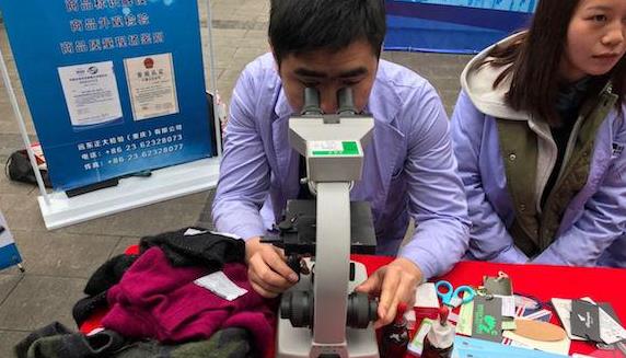 很多人认为,网上买东西,物美价廉,可你是否又知道其中的猫腻有多少?昨日,重庆市南岸区工商分局“3.15国际消费者权益保护日”活动在重庆工商大学举行。在活动现场,第三方质检机构专业人员告诉记者,网购服装很多都是“挂羊头卖狗肉”,衣服吊牌显示的成分与实际成分并不相符。