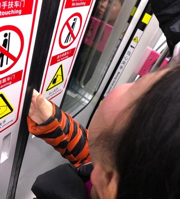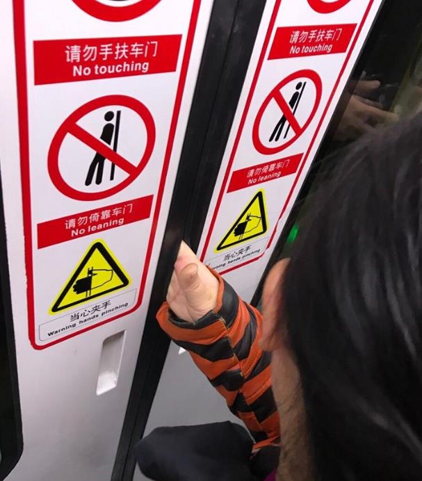 然而,他身旁的一位穿着橙黑条纹棉袄、挎着小皮包的女子却发生了意外状况。这个个子不高的女子,独自一人乘车,在挤到车门口时,着急想要从即将锁闭的车门下车,虽然车门在触发感应装置后停了一下,但由于女子有些迟疑,车门再次关闭,她的右手手指为来得及抽出,就被车门夹住。