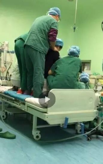 3月5日清晨5时55分,230斤重的叶女士即将临产,被紧急送进妇产医院,因为妊娠合并心衰,使得她只能费力地保持坐姿被推进产房。四位助产士采取跪姿、蹲姿、躬姿从左、右、后三个方位人工固定体重达230多斤的产妇,让其麻醉后仍保持稳定的坐姿接受手术,以免手术中出现意外状况,其余医生或蹲或跪找到一个最适合手术的姿势。