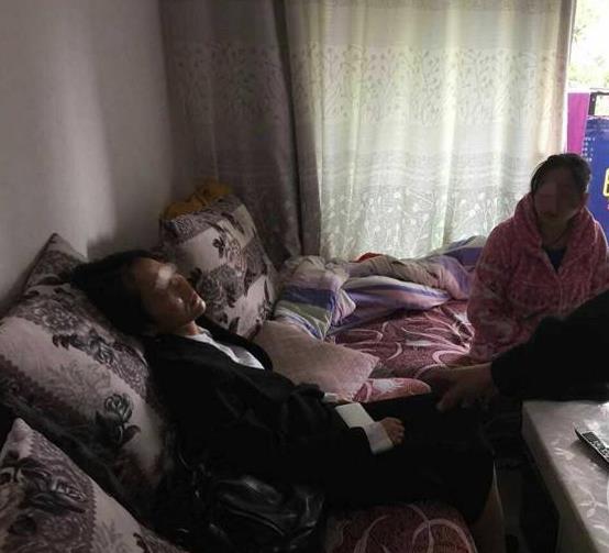 报警的李女士(化名)穿着睡衣,头发凌乱地坐在沙发上,李女士的老公和儿子气呼呼地在一旁,屋子里一片狼藉。沙发的另一边,还坐着一名中年女子,面无表情。