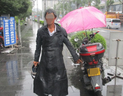 近日,重庆多地阴雨不断,部分摩托车驾驶员为了在行驶过程中不被雨淋湿,想出了在车上安装伞的办法。