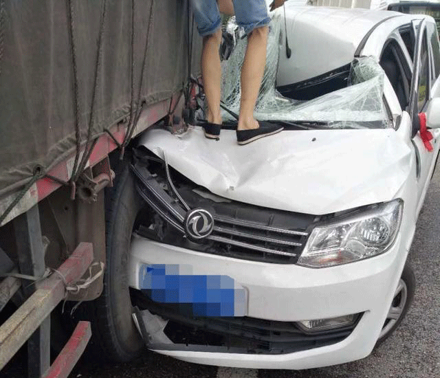 重庆一男子爱车深嵌货车“腹中” 全车报废还负全责