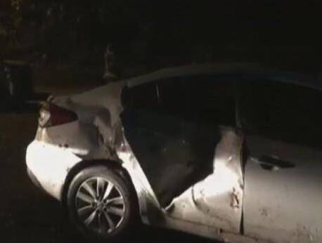 重庆一男子驾车偶遇滑坡 车身被砸扁了