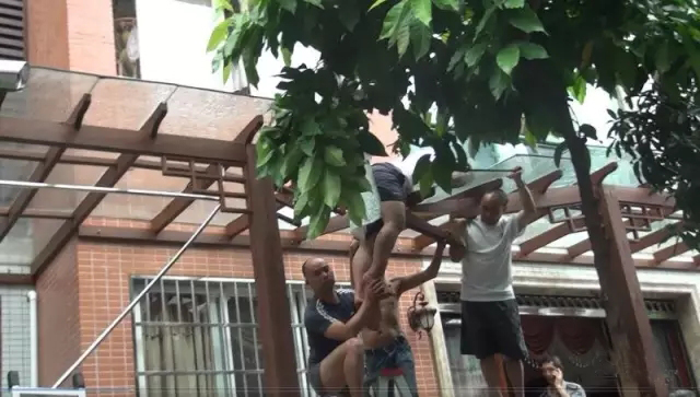 2017年7月8日早晨6时许,在重庆万州沙龙路的某小区,一年轻男子从5楼坠下,掉落在二楼的阳台玻璃架上,动弹不得。