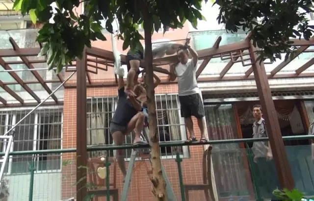 闻声赶来的附近居民见此情况后,立即拨打119电话,请求消防官兵救助。