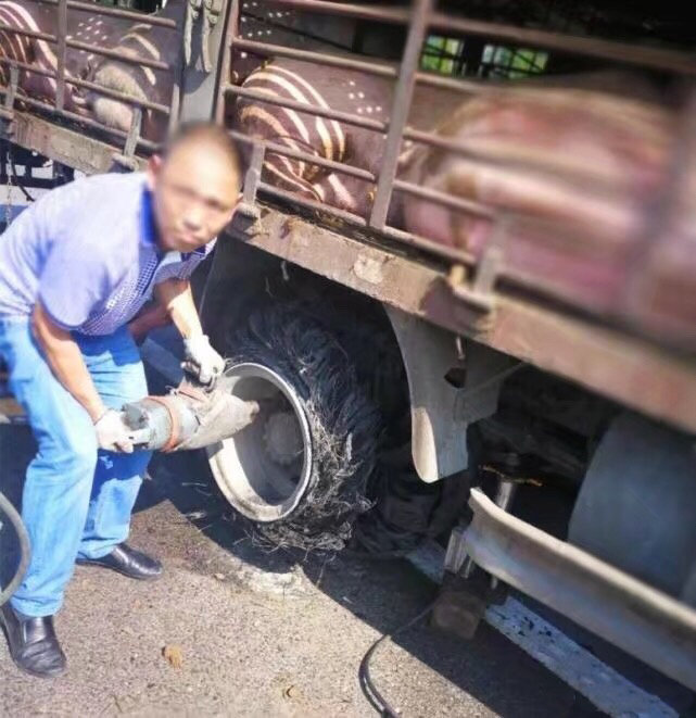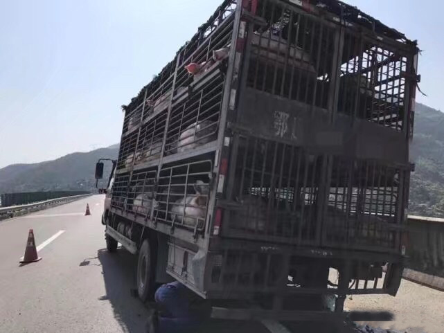 运猪车高速路上爆胎 生猪差点被热死