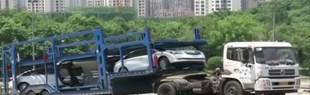 重庆一运载新车的平板拖车侧翻立交桥 6辆别克受损