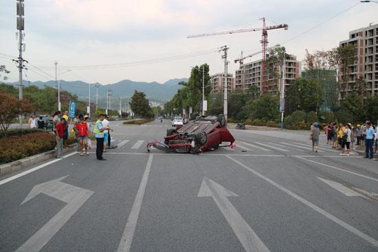 民警火速赶往现场发现,一辆红色的轿车四脚朝天翻倒在道路中间,挡风玻璃破损,气囊弹出,车辆前部面目全非,受损严重。该车驾驶员姓朱,23岁,嘴唇破裂、4颗牙齿撞掉;另一名乘客小李额头、手臂擦伤。