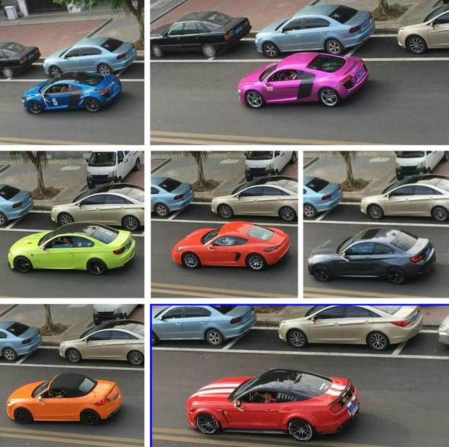 据悉,婚礼车队动用了多辆豪华的轿车,车身颜色十分靓丽,红橙黄绿青蓝紫都有,一排豪车前行,引得路人纷纷围观。