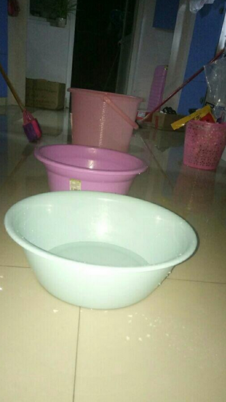 找来盆子,水桶等工具接水。据说一天能接好几盆。