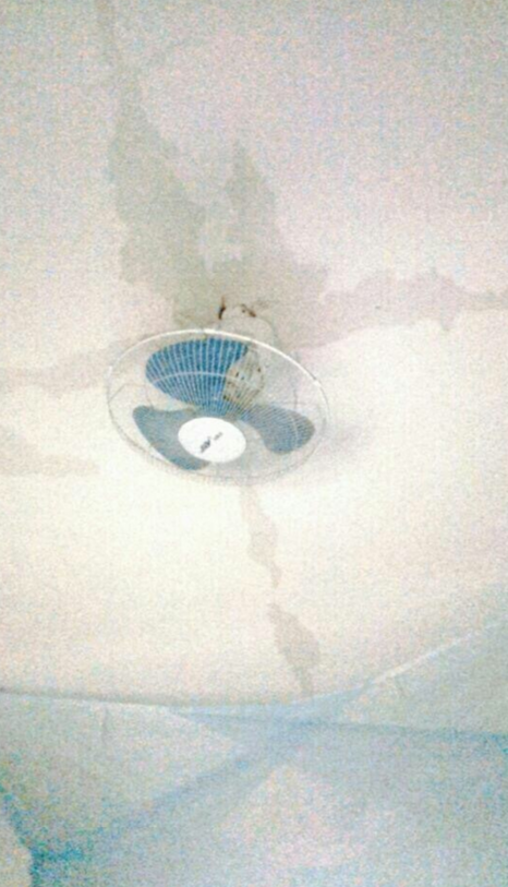 风扇与天花板连接处漏水严重,相当危险。