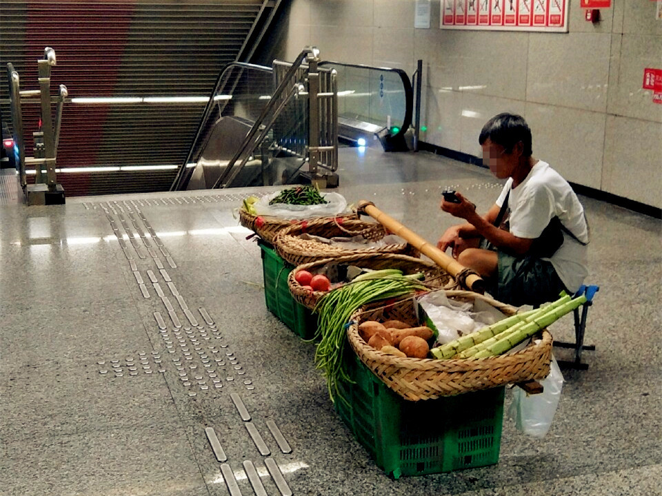 大伯轨交站内摆菜摊卖菜 网友:这怕要不得哦