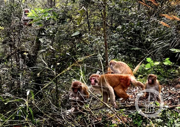 猕猴下山窝冬觅食 金佛山北坡公路现猴群