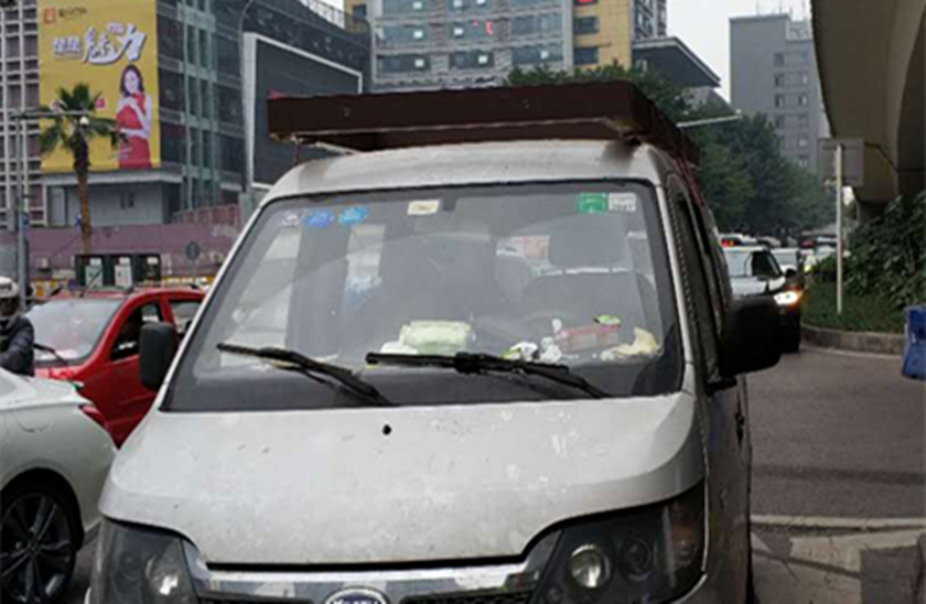 驾驶员王师傅为节约几十元运费,用面包车充当货车,把广告牌绑在面包车车顶上。这一危险又违法的行为被民警查获,王师傅被罚款100元。