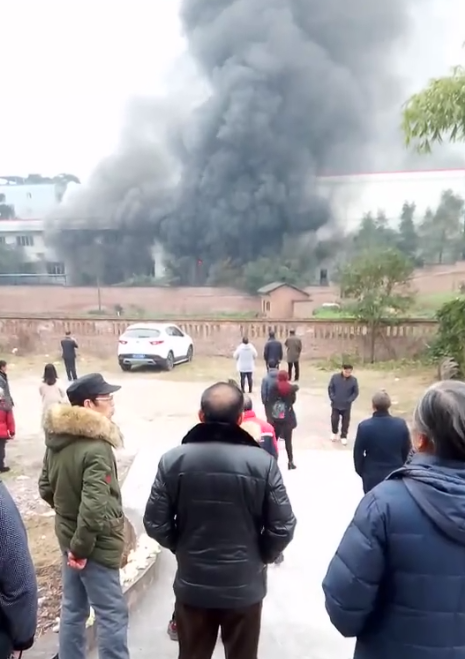 重庆一工厂突然失火 黑烟浓烈似蘑菇云