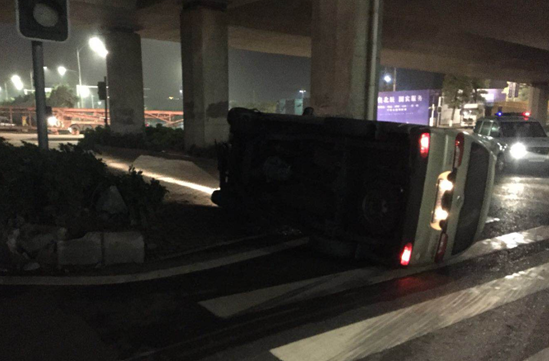 男子边开车边和妻子视频通话 结果轿车侧翻在路边