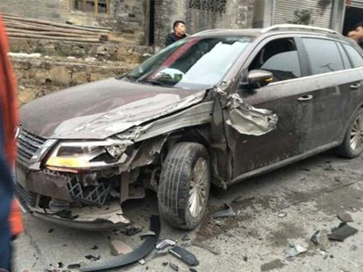 新车没上牌就撞了 车头面目全非