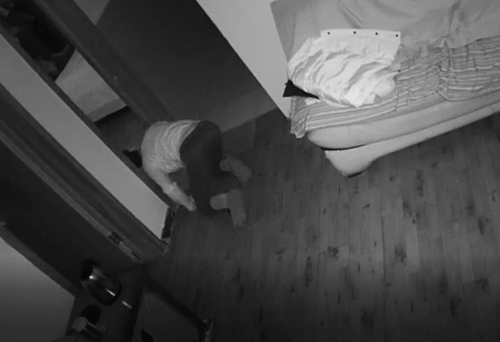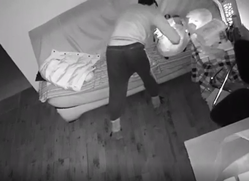 监控显示,2018年1月7日晚上8点十几分的时候,小偷就打着手机电筒鬼鬼祟祟的进入房间。这个小偷看起来约二十几岁左右,戴着口罩,看不清脸。刚开始进入房间的时候还畏手畏脚的,小心翼翼的走路,甚至为了不让人发现脚步声,还趴在地上行走。
