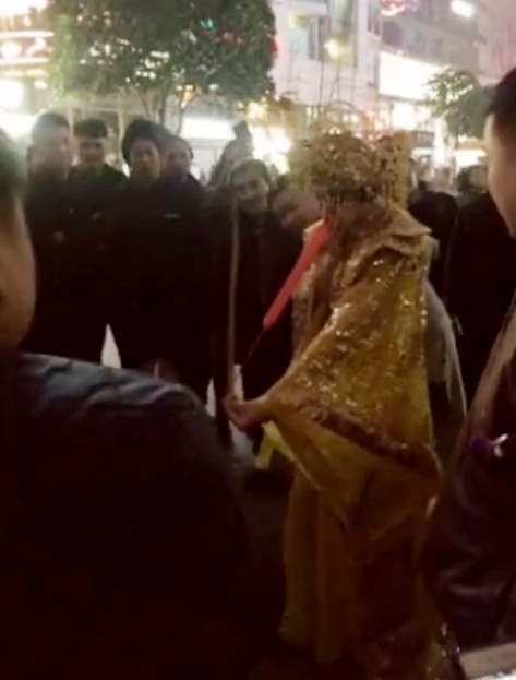 发布时间:2018-01-22 15:06:39人群中,一位打扮隆重,金光闪闪的户外主播十分引人注目。晃眼一看,犹如“娘娘”驾到,“娘娘”头戴凤冠披穿薄纱,全身散发着珠光宝气异常雍容华贵。