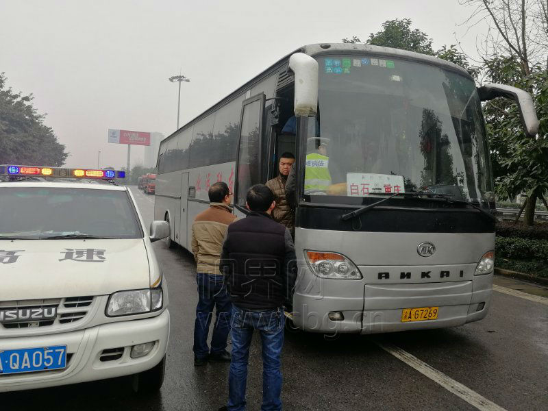 据高速执法一支队二大执法人员介绍,昨天上午11点左右,他们接到长寿辖区的高速执法人员通报称,在沪渝高速晏家服务区内,有两名乘客因上厕所,被粗心的大客车驾驶员遗忘,导致两人无法继续赶路。随后,高速执法人员立即通过沿途监控和联系客运公司,终于在沪渝高速复盛站找到了客运车辆。最终,两男子在长寿和渝北辖区的高速执法人员联合帮助下,终于“追上”了大客车。