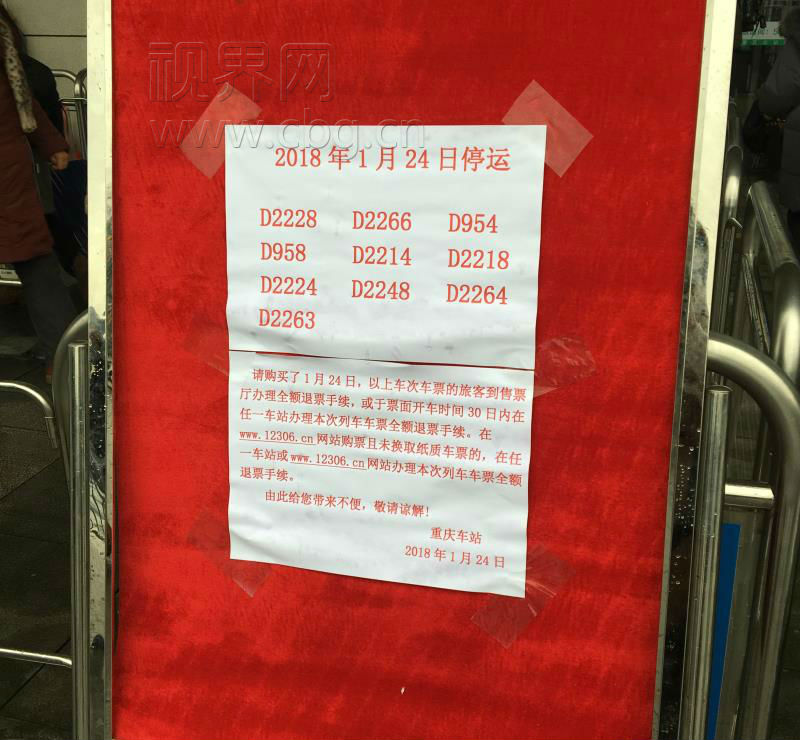 来自重庆火车站的消息,受雨雪天气的影响,今天,重庆北站北广场共有10趟动车停运。