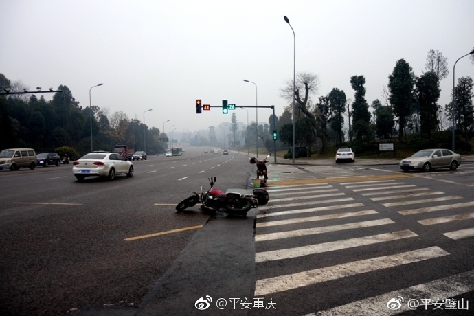 来自平安重庆官微的消息:近日,一摩托车与一电瓶车在璧山黛山大道北段一路口发生相撞事故,交巡警赶到现场,双方正在“你闯红灯了!