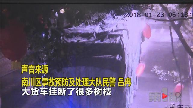 1月23日早上6点12分左右,在南川城区北街,一辆大货车在道路上行驶时,几乎占据了整个道路,由于车辆太高,行驶中直接将路旁的一些树枝、灯饰以及路边门面的空调架都被挂断。