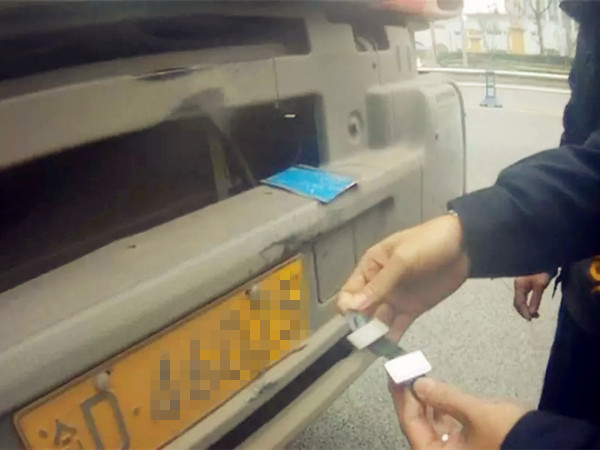 货车司机为挡车牌出奇招:磁铁吸附铁片