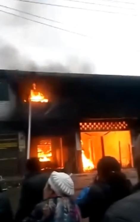 2018年1月26日下午,重庆彭水大同镇一门市突发火情,火焰猛烈黑烟弥漫。