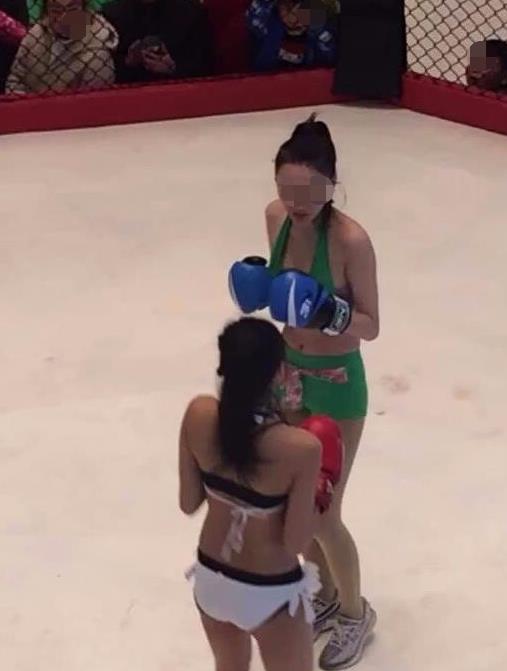 通过网友拍摄的照片,我们可以看到,在一个围起来的拳击场内,有两位穿着比基尼的美女,挥动着拳头相互切磋着。动作幅度并不大,来回的搏斗双方也并不是特别激烈。而在围栏之外,站着许多围观的市民,有小孩也有成人,大家都是穿着厚厚的衣服。