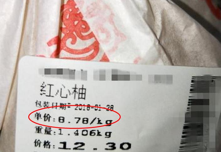 当时清楚地看到,超市的价签上标注着红心柚的价格为3.99元每斤,才选择了购买,可是后来称重后,竟然发现小票上的实际计价竟然变成了8.78元/㎏,也就是4.39元每斤。
