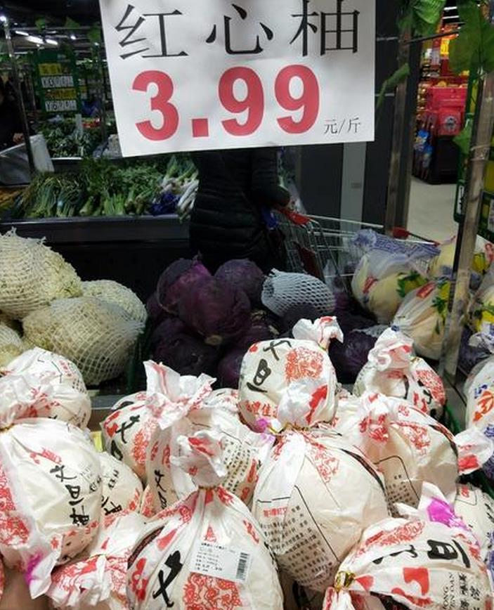 据爆料网友介绍:当天因为家里的老人生病住院,于是想在超市买点水果给老人调养一下。在超市辗转一圈后,准备购买一个红心柚。