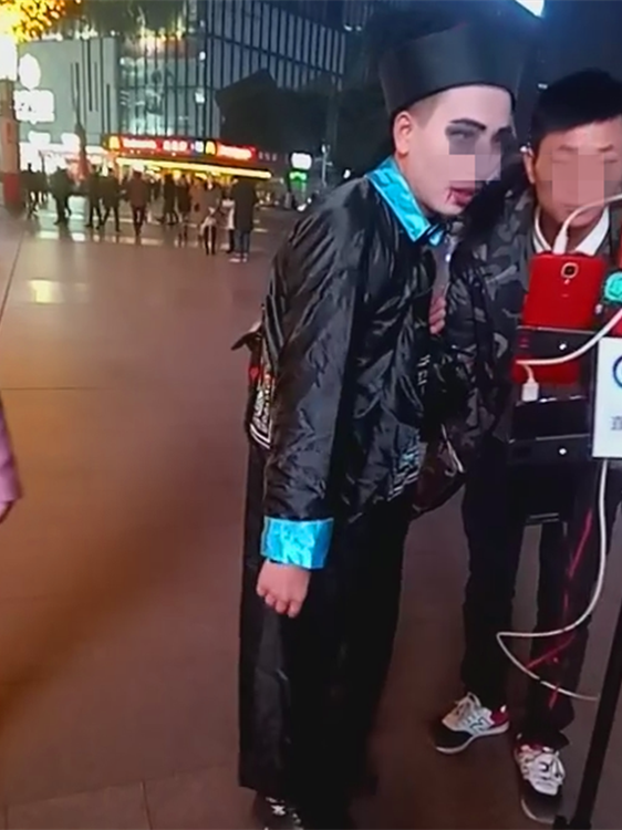 小伙街头扮“僵尸”直播 惊悚又呆萌