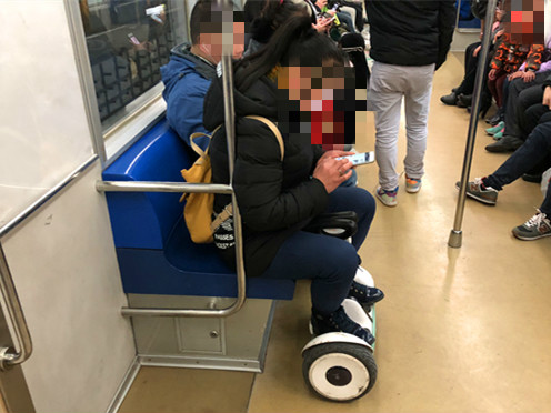 小编在此提醒广大市民,平衡车、电动滑板车这一类代步工具都是禁止在轻轨内使用的。轻轨是人流密集的公共场所,为了自身及他人的安全,请勿使用‘风火轮’。