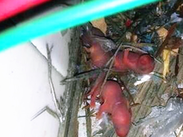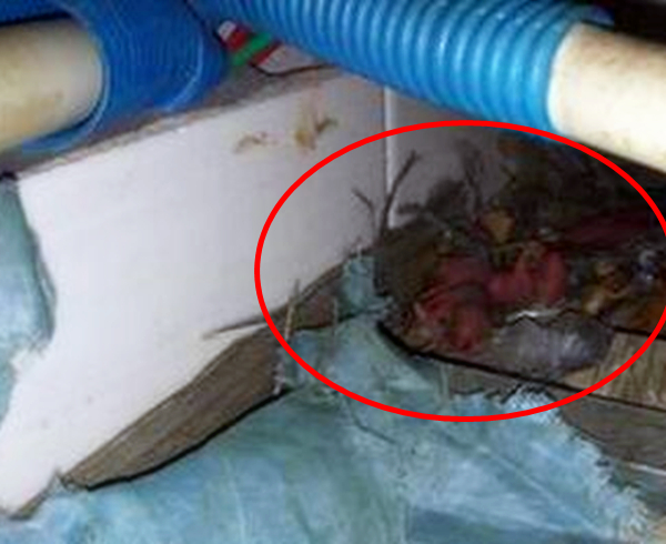 鼓起勇气,想一探究竟,果真被吓了一大跳。掀开吊顶,一股异味扑鼻而来,仔细一看,吊顶处居然有一窝老鼠幼崽,密密麻麻的,看得人瘆得慌。