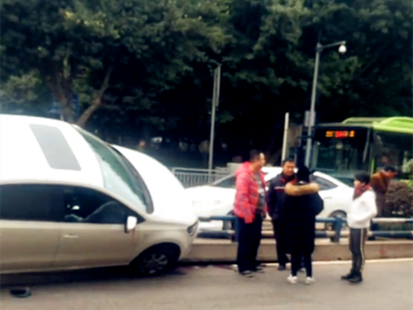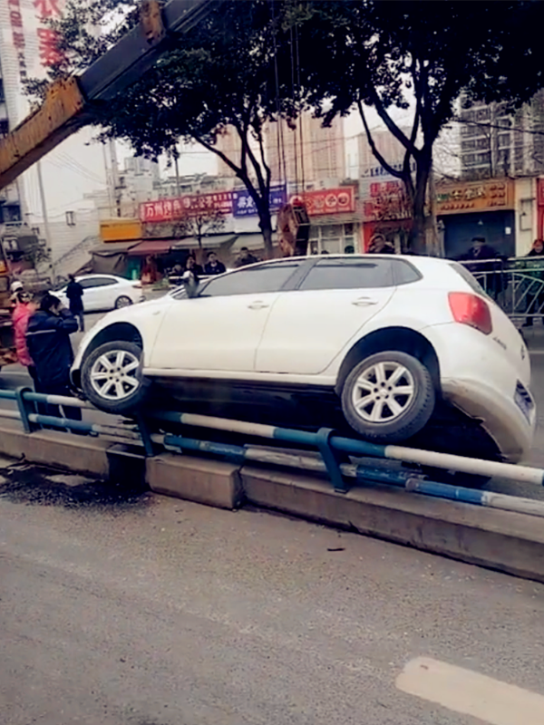 女司机把车开上护栏 画风特别引围观