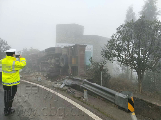 近日,渝北区石船镇的货车车主李某追求“最大效益”让车辆严重超载,上路行驶时非但不小心慢行,在运货送去工地的路上,还不断超车,飞驰快跑。来到石统路羊儿坡路段时,李某见这是一段急弯,又是下坡,仍然不顾危险,车速不减。结果,由于载货过高、过重,车辆在转弯时出现制动失灵,随着下坡路车速越来越快,李某受到惊吓,慌乱之际选择了跳车,眼睁睁看着大货车撞向护栏防护栏,并发生侧翻……货车呈90度“侧躺”在路边,压倒路边一片防护栏,车身严重损毁,货厢中装载的砖块散落一地,现场一片狼藉,事故损失高达6万多元。