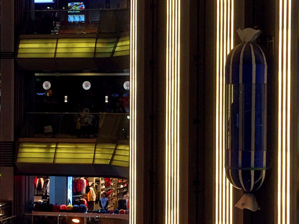 2018年2月2日重庆江北有市民在一商场内,看到往日熟悉的电梯变了样,原本棱角分明的外貌换装成了“糖果”,七彩缤纷非常诱人,有市民说:“好想咬一口”。